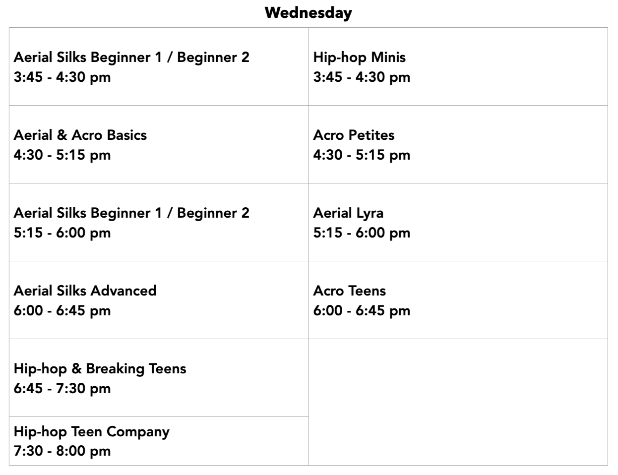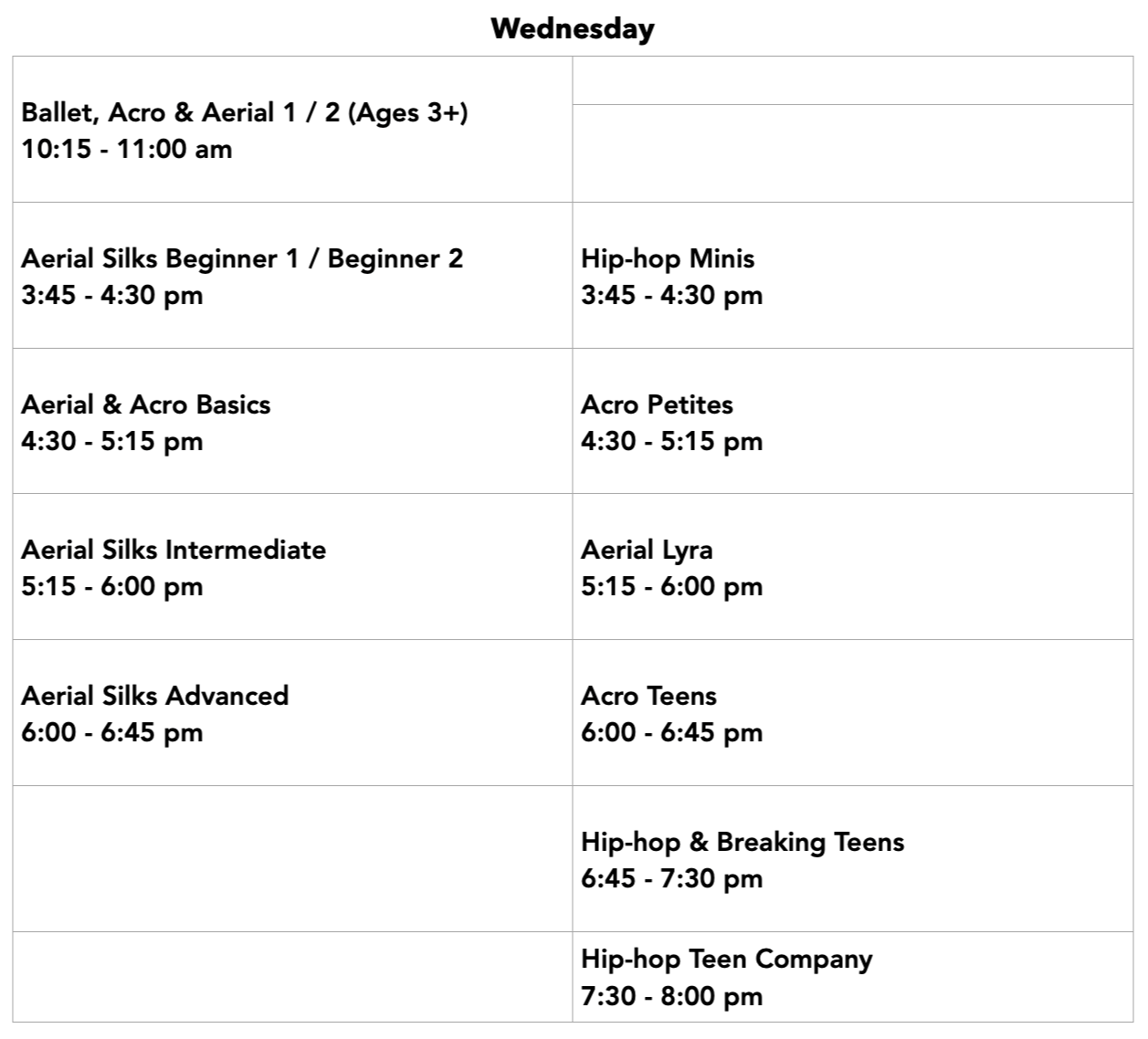 To register, please create an account and then email bksdanceaerial@outlook.com with your class selections.